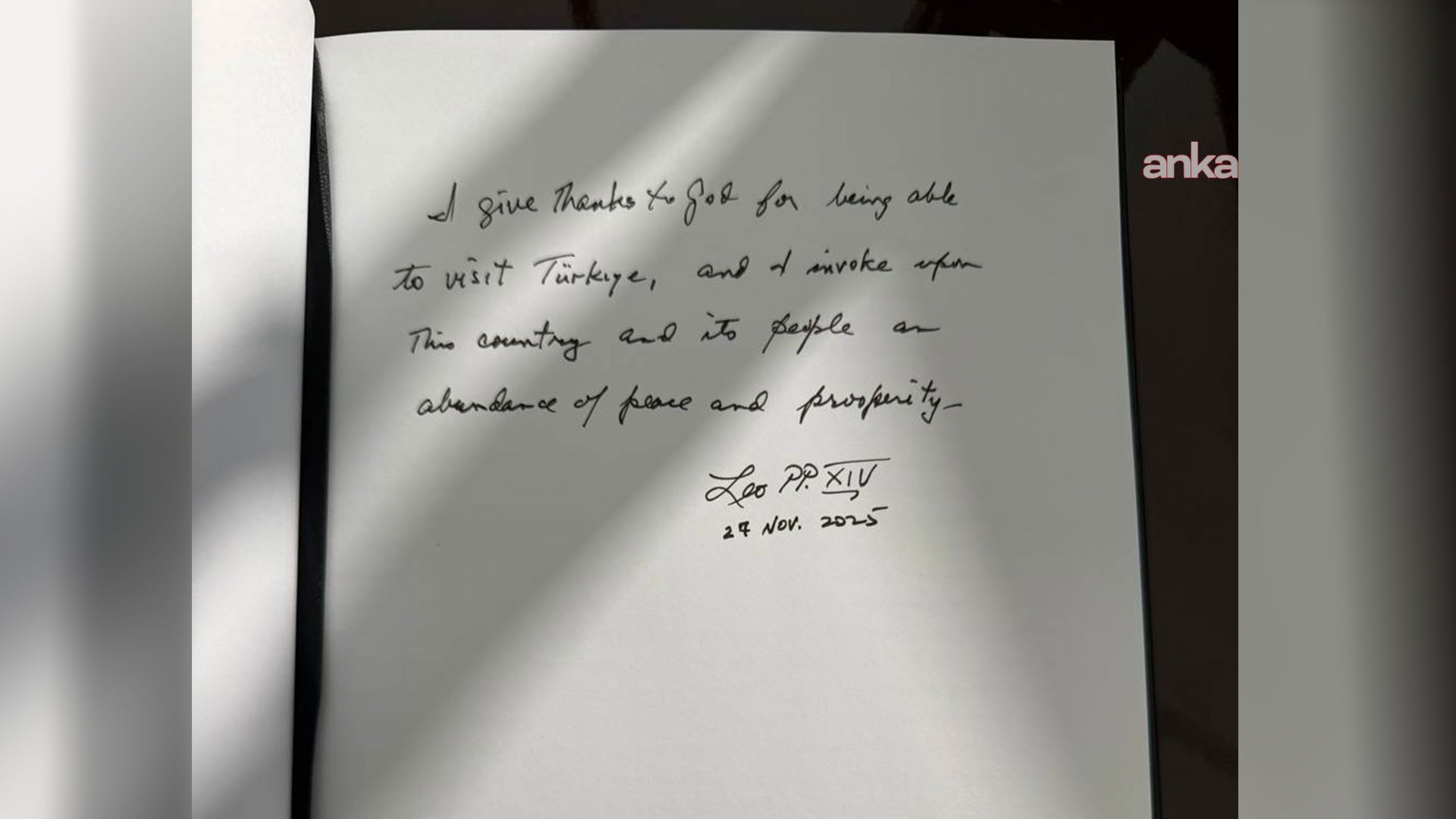 “Türkiye’yi ziyaret edebildiğim için Tanrı’ya şükrediyorum ve bu ülkeye ve insanlarına barış ve refah bolluğu diliyorum.”